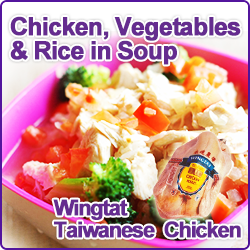 | Being a good dinner host, one would like to prepare ingredients, as well as, a well thought out menu in advance to cater to your guests. If your guests includes some elderly people, they often prefer some food with rice (believing that a bowl of rice gives the needed strength and energy). Chicken, Vegetable & Rice in Soup is a simple recipe I recommend. Chicken can be steamed in advance and the meat would be tender; remember to keep the "chicken juice" to further enhance the flavor of the rice soup. Stir fry some colorful vegetables to mix into the rice soup. Your guests would surely see and taste the thoughtfulness you put into preparing this recipe.