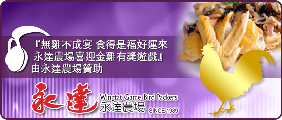 「無雞不成宴 食得是福好運來 永達農場喜迎金雞有獎遊戲」由永達農場贊助播出。